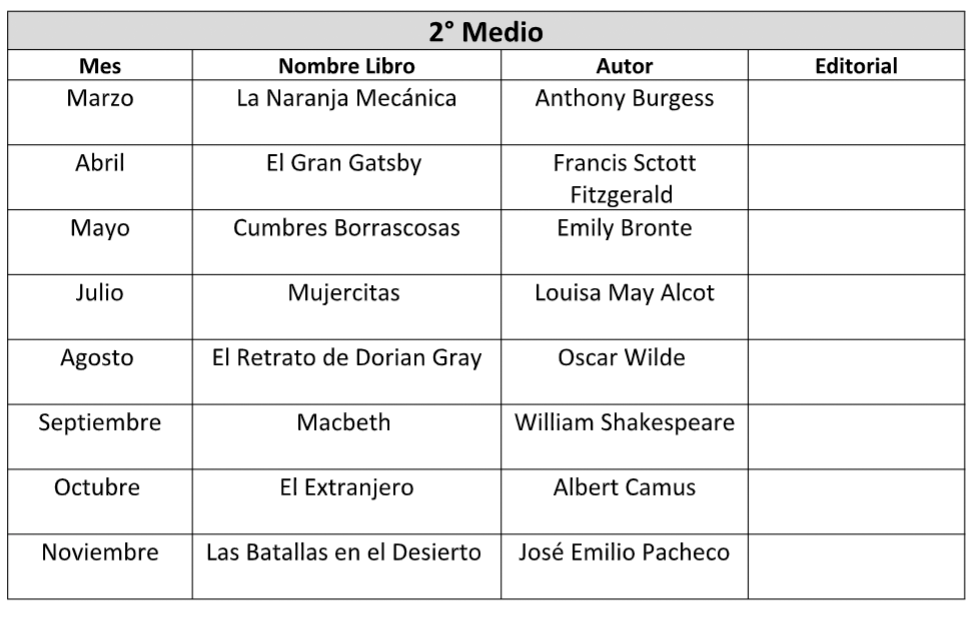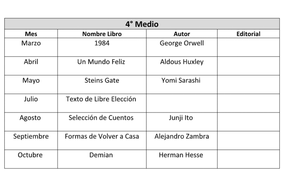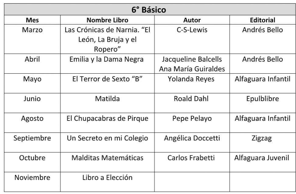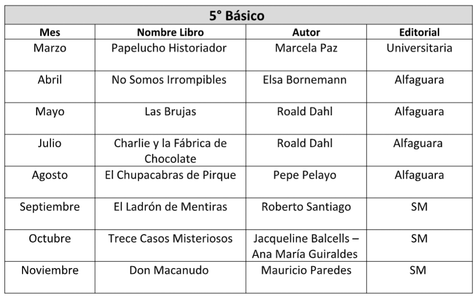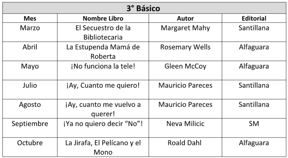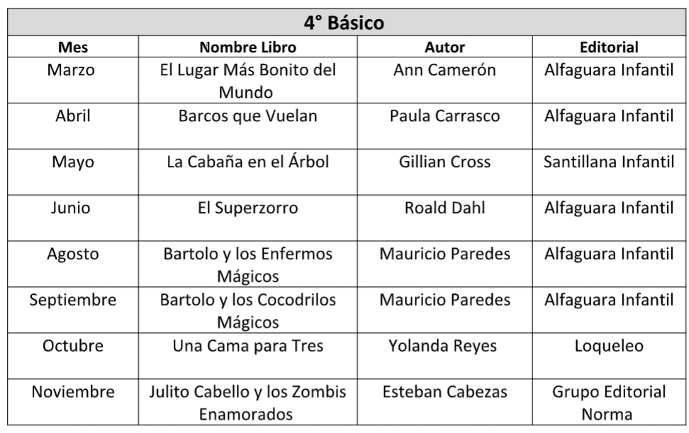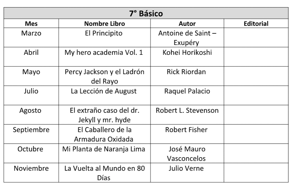 Link de Página Web que incluye PDF de Plan Lector de 7° año básico a 4°